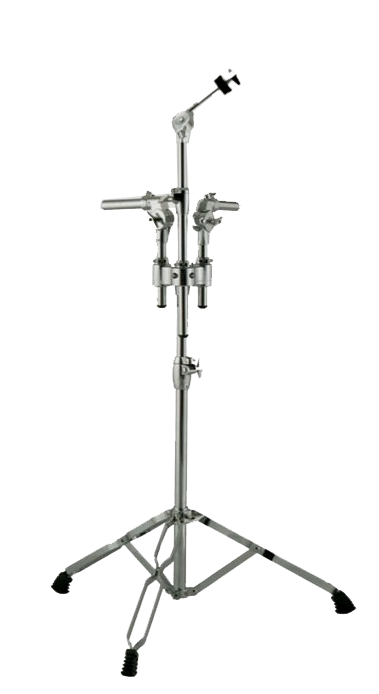 1105B Pie para 2 toms y plato. Reforzado doble. Diametro tubos: 22/19 mm. Rango altura: 750/900 mm. Caja completa: 4 unidades.