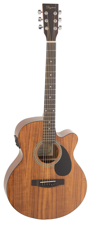 A401CEKOA Daytona A-401KOA Mini-Jumbo. Tapa: Koa. Aros y fondo: Koa. Diapasón: Álamo. Puente: Nogal. Electrificada con Cutaway. EQ: TP-30 con afinador. Acabado: Brillo. Las imágenes publicadas pueden diferir ligeramente del producto final