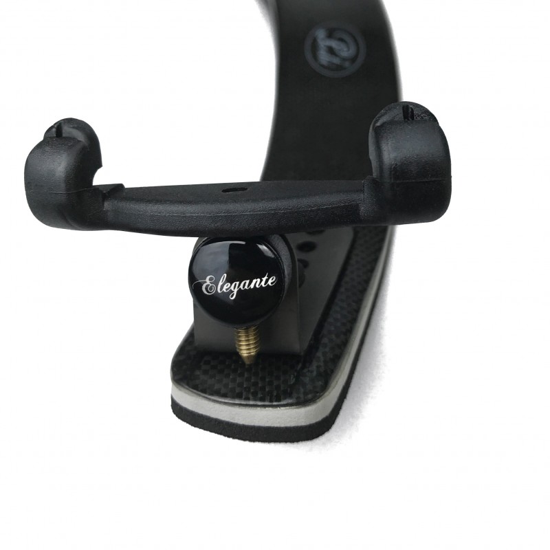 Almohadilla para viola diseñada con la parte central de fibra de carbono. Su diseño delgado y cómodo incluye patas fijas de titanio con pies de goma antideslizantes, ajustables en ancho y altura. Ofrece una ergonomía perfecta y un agarre seguro en el instrumento, reduciendo eficazmente el efecto acústico negativo sobre las vibraciones de la viola