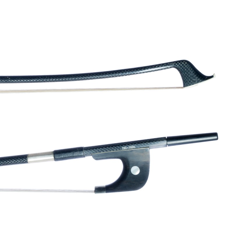 Arco fabricado en fibra de carbono, material más resistente y longevo que la madera, y que reacciona muy poco a los cambios de temperatura o humedad. La vara redonda está embellecida con el detalle de fibra vista 3D. Este ejemplar tiene buena relación calidad-precio y es ideal para músicos de nivel intermedio. CARACTERÍSTICAS · Fibra de carbono · Vara redonda con fibra vista 3D · Nuez de ébano revestida con ojo simple · Crin natural · Montado en níquel · Sistema alemán · Disponible: 4/4 – 3/4