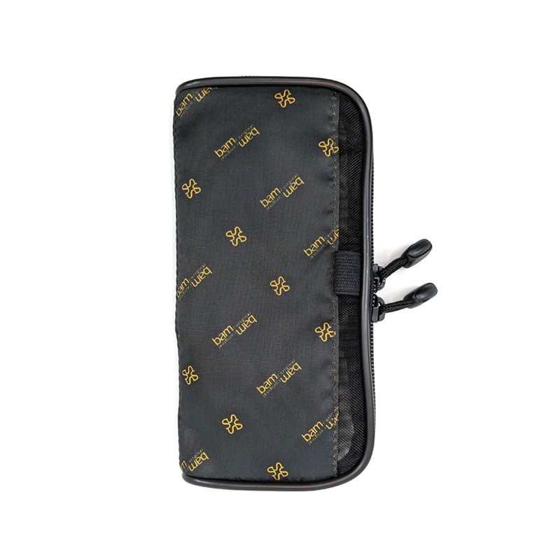Estuche para accesorios. Malla de tul negro y nylon con cremallera. Medida 18 x 8 x 1,8 cm.