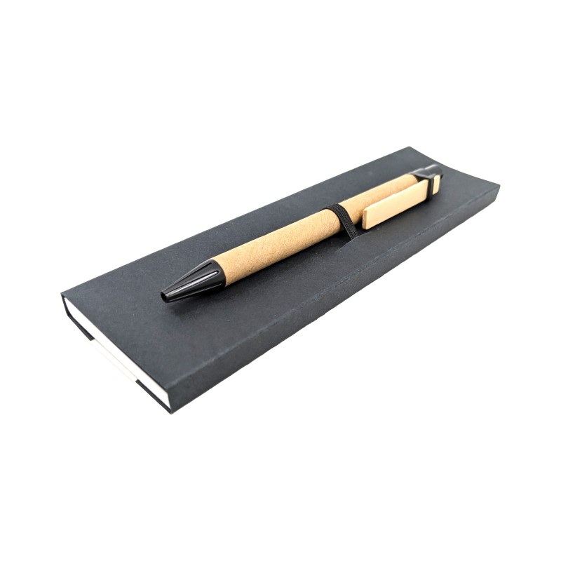 CARACTERÍSTICAS · Material: plumier de cartón y bolígrafo de PVC · Color: marrón · Motivo: partitura de Mozart · Medidas: 5 x 18 cm