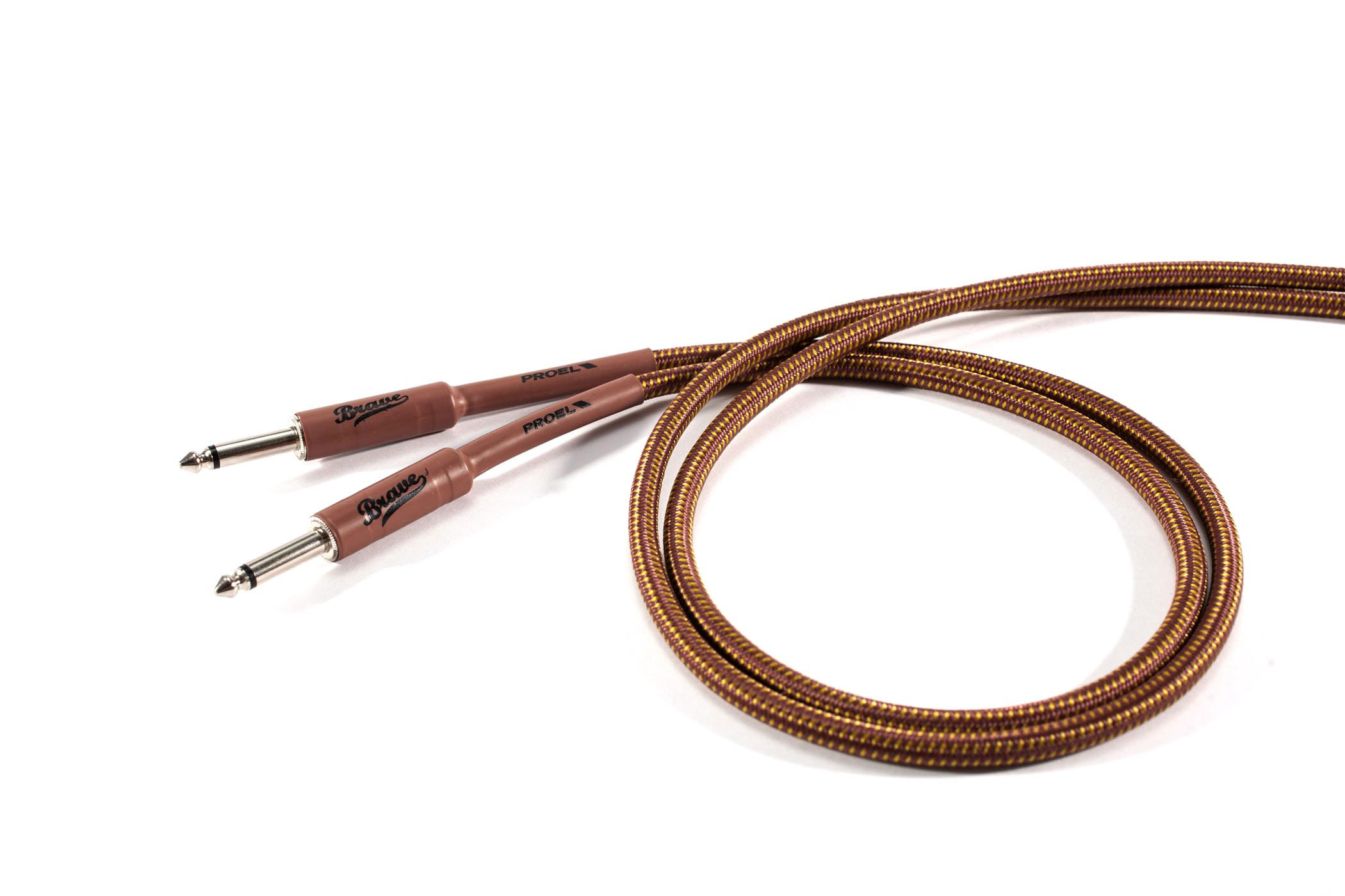 CABLE DE INSTRUMENTO Cable de instrumento Proel Brave BRV100LU6BY. Conectores jack – jack. Cable de PVC flexible con cubierta de algodón acabado color marrón/ dorado, diámetro 7mm. Longitud 6m.