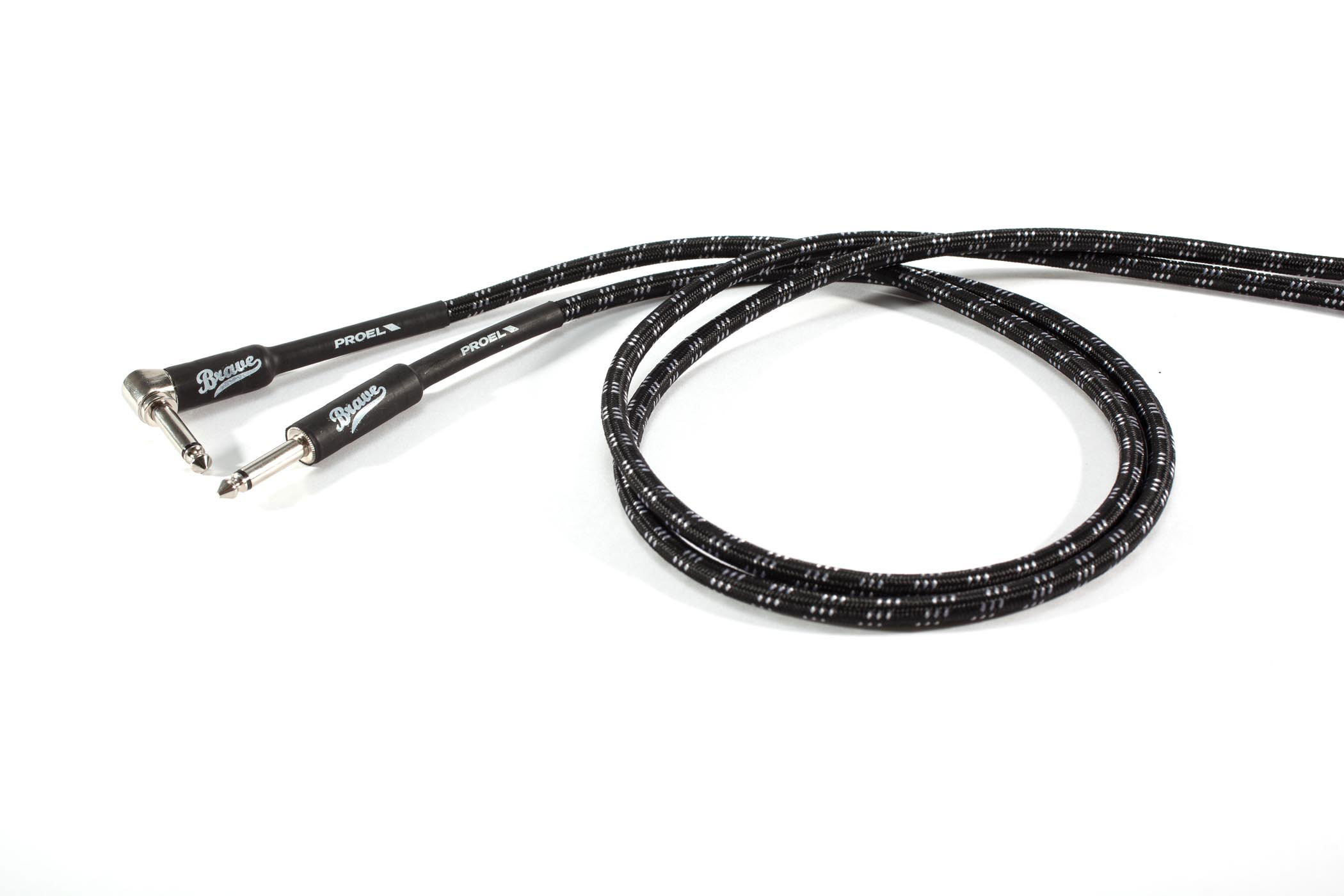 CABLE DE INSTRUMENTO Cable de instrumento Proel Brave BRV120LU6BW. Conectores jack – jack acodado. Cable de PVC flexiblecon cubierta de algodón acabado color negro/ blanco, diámetro 7mm. Longitud 6m.