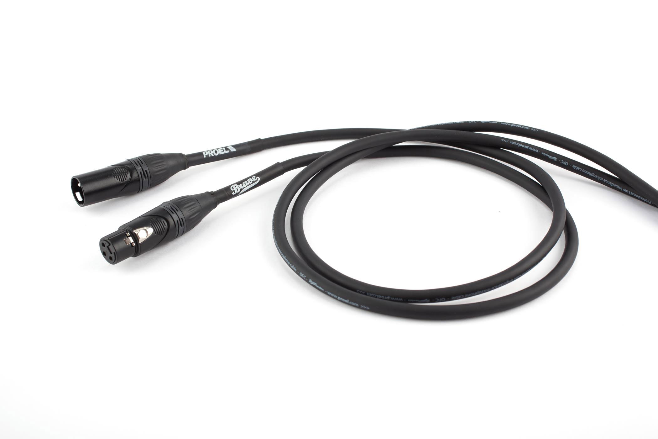 CABLE DE MICROFONO Cable de micrófono Proel Brave BRV250LU10BK. Conectores XLR 3P – XLR 3P. Cable de PVC flexible color negro, diámetro 7mm. Longitud 10m.