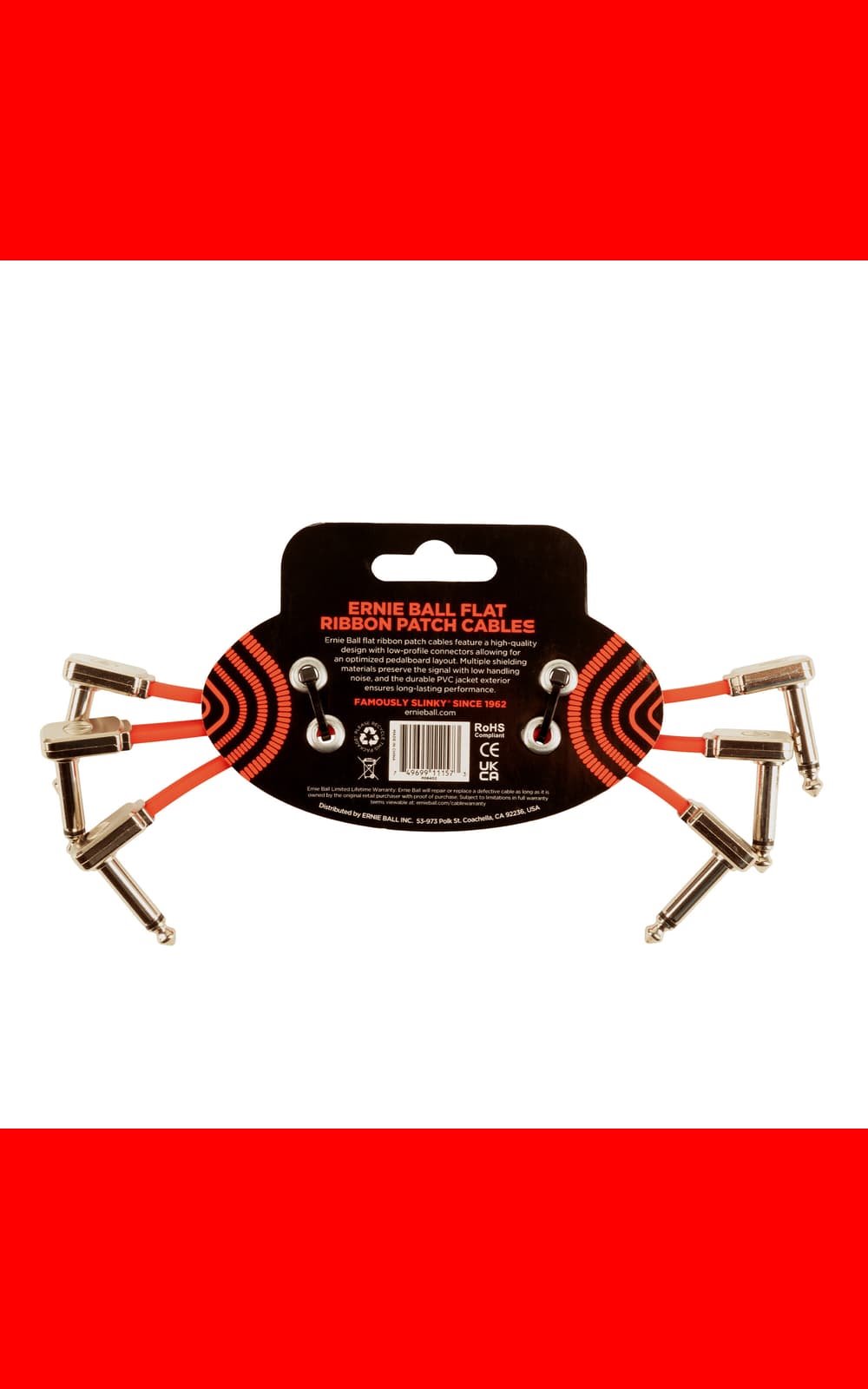 CABLE ERNIEBALL FLAT RIBBON PATCH 15 CM ROJO – PACK 3