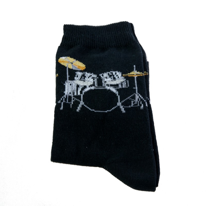 Calcetines negros con dibujo bordado de batería.