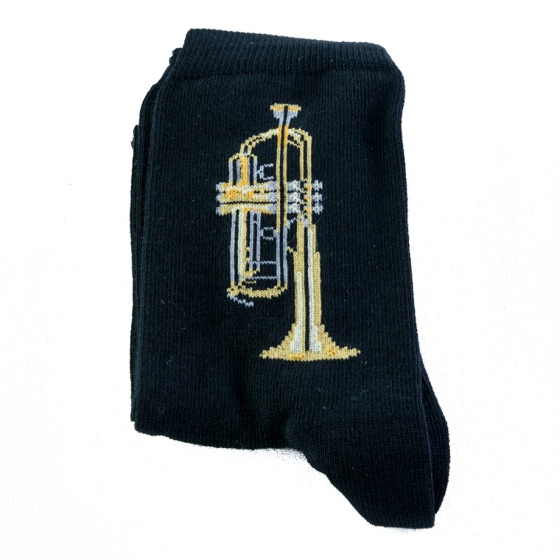 Calcetines negros con dibujo bordado de trompeta.