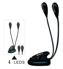 CL004 Aplique de luz doble. 4 LEDS. Pinza sujeción atril 3 pilas AAA. Incluye cable USB de alimentación.