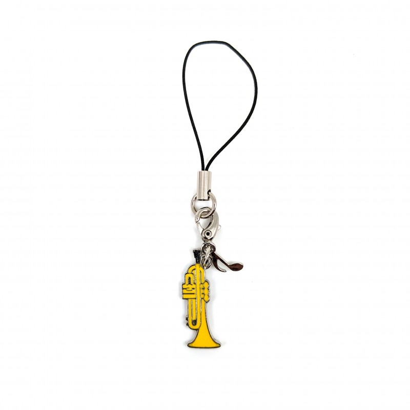 Colgante metálico para decorar tu llavero con forma de trompeta. . Puedes usarlo también para decorar la cremallera de tu estuche.