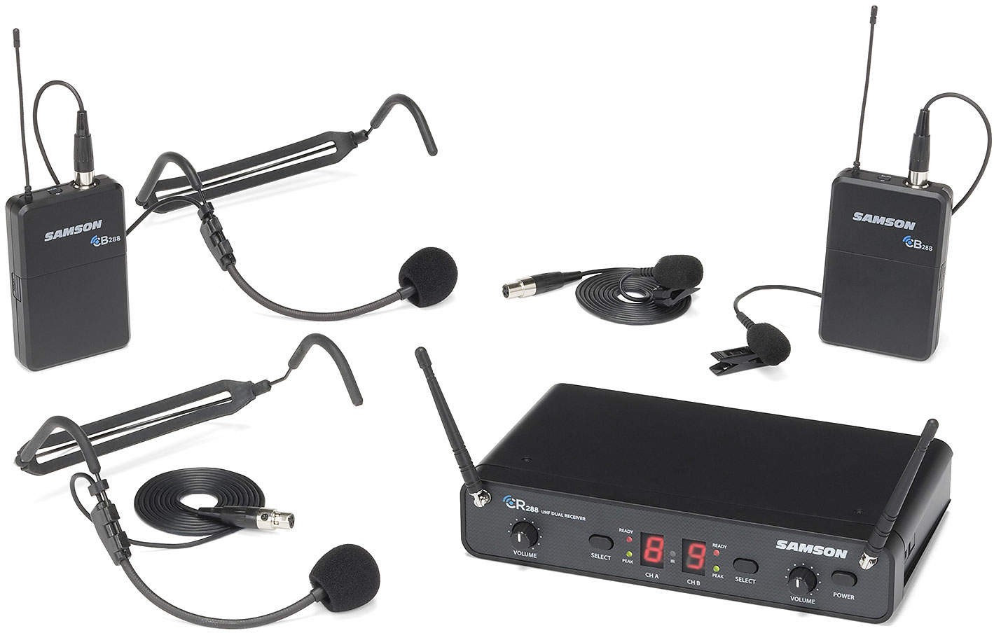 SISTEMA WIRELESS: DUAL Conjunto compuesto por receptor DIVERSITY dual y dos emisores de petaca CB288 para usar simultáneamente. Incluye dos micrófonos de diadema HS5 y dos de solapa LM5 para mayor versatilidad. Múltiples canales disponibles, permite hasta 8 sistemas simultáneos (16 mics) según región. Alcance aprox. 90m.Sincronización canales via infrarrojos. Incluye adaptador alimentación receptor, cable jack 1/4′, accesorios enracado. Petaca funciona con 2x baterías AA. Autonomía 8h. Ideal clases, conferencias y presentaciones.