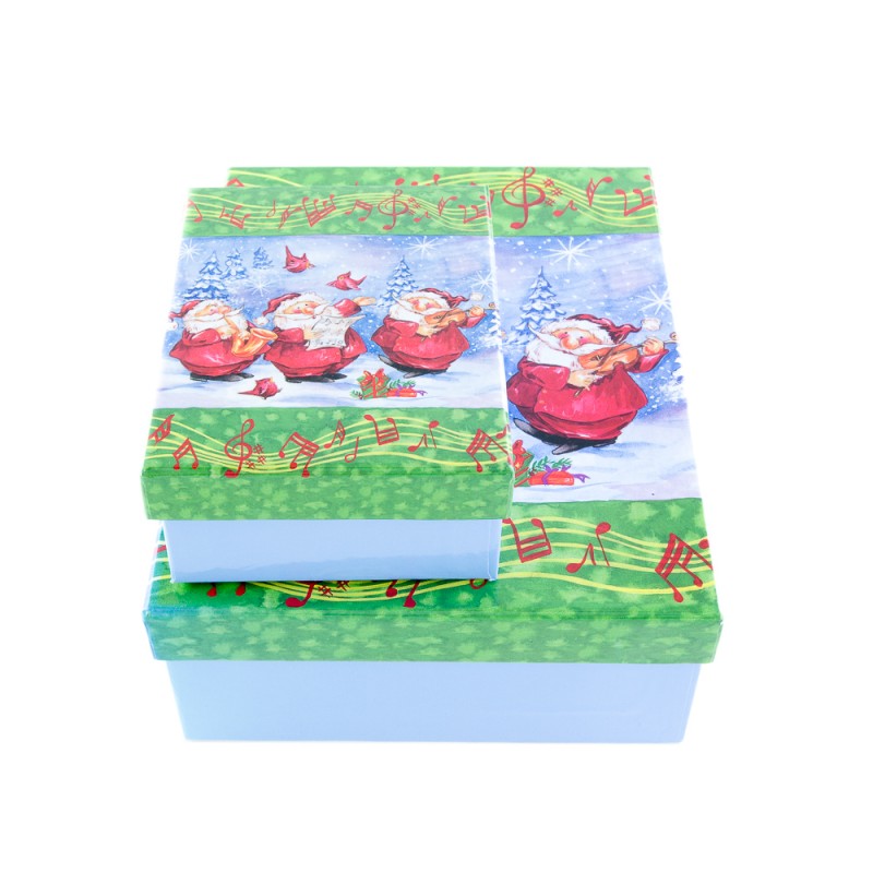 Set de dos cajas con motivos musicales navideños de Papá Noel.