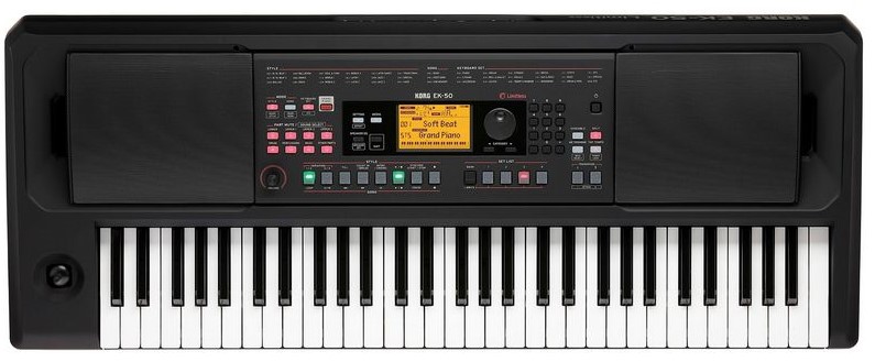 TECLADO DE ACOMPAÑAMIENTO CON ALTAVOCES El EK-50, el popular y accesible teclado con acompañamiento automático de KORG, ahora está disponible en un modelo especial. Está equipado con altavoces que producen un gran volumen para satisfacer las necesidades de interpretación en un café o pequeño evento, por sí solo, sin depender de un sistema de amplificación.