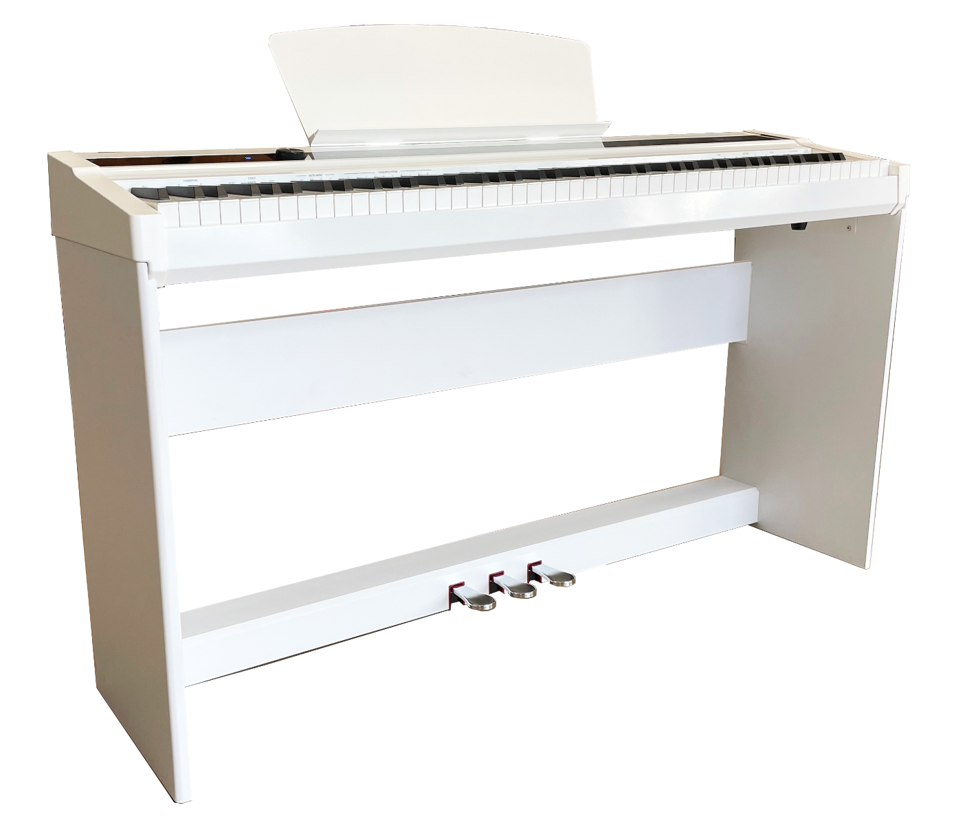 EKP200WH PIANO DIGITAL EK P-200 BLANCO Teclado: 88 teclas HAMMER contrapesado. 92 notas de polifonía. Voces: 128. Botones de función en pantalla táctil. Reproductor de MP3 / Bluetooth. Grabación / reproducción. Control de Voces: Volumen Metrónomo Afinador Transpositor división. Tres grados de sensibilidad. Función customizacion. 100 canciones de demo. Efectos digitales de Reverb y Chorus. Tres pedales. Salida Auriculares conector USB (pendrive) Line Out Sustain Power DC12V. Apagado automático. USB to HOST. MIDI OUT. Potencía: 25 W + 25W. Medidas del cabezal:1300 x 330 x 150 mm. Peso: 22 kgs.