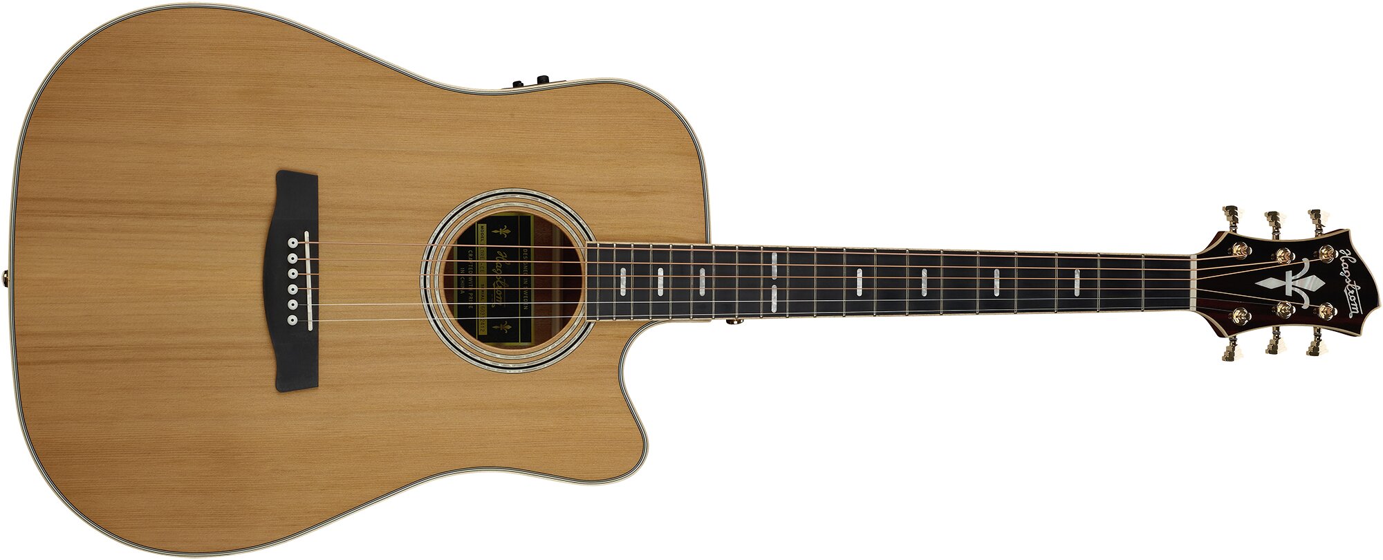 GUITARRA ELECTROACUSTICA DE 6 CUERDAS CON CUTAWAY Elfdalia II – CE – Dreadnought Electro/Acoustic – Natural Gloss, Solid Cedar Top, Laminated Mahogany Back and Sides, Satin Mahogany Neck (Dove Tail), Cutaway, Resinator Fretboard and Bridge, Graph Tech Saddle and Nut, Fishman On-board Pre-amp Isys+, Gold Hagstrom Tuners 18:1