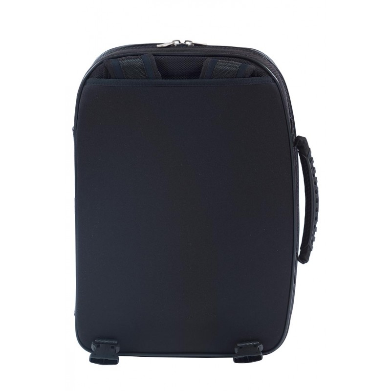 Los estuches de la serie Signature tienen un exterior de una mezcla de cuero y Cordura, resistente al agua y anti-rotura. Su técnica de protección térmica patentada, junto con sus exclusivas cualidades aislantes, ofrecen una protección sin igual frente a los cambios de temperatura y los golpes o sacudidas propios del transporte diario. Todo ello manteniendo un peso extremadamente ligero del estuche. CARACTERÍSTICAS EXTERIORES · Exterior de una mezcla de cuero y Cordura · Asa lateral · Dos correas acolchadas tipo mochila, ajustables y extraíbles · Bolsillo delantero de cuero · Cremallera · Dimensiones: 42x30x17 cm CARACTERÍSTICAS INTERIORES · Interior de espuma de poliuretano de alta densidad para proteger de los choques térmicos · Para clarinete Si bemol · Cuatro ranuras para barriletes · Espacio para un atril · Cuerpo superior: 22 cm · Cuerpo inferior: 25,5 cm · Campana: 10 cm PESO · 2 kg COLOR · Negro y gris
