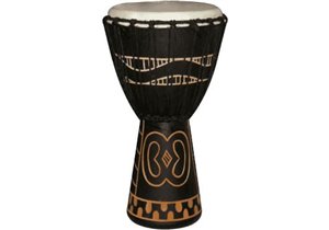 Djembe de 14? decorado con motivos africanos. Estilo artesanal guineano