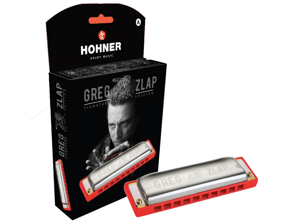 ARMÓNICA DIATÓNICA En tono de La, igual que el ‘Solo de Gabrielle’, la armónica HOHNER Greg Zlap, cariñosamente apodada ‘Red’ por Greg, es una nueva armónica especialmente diseñada para adaptarse a las tres demandas más importantes de Greg a una armónica: laterales abiertos para soportar una respiración potente, peine redondeado y especialmente cómodo para facilitar una interpretación precisa y virtuosa, y un peine rojo brillante para brillar en el escenario.