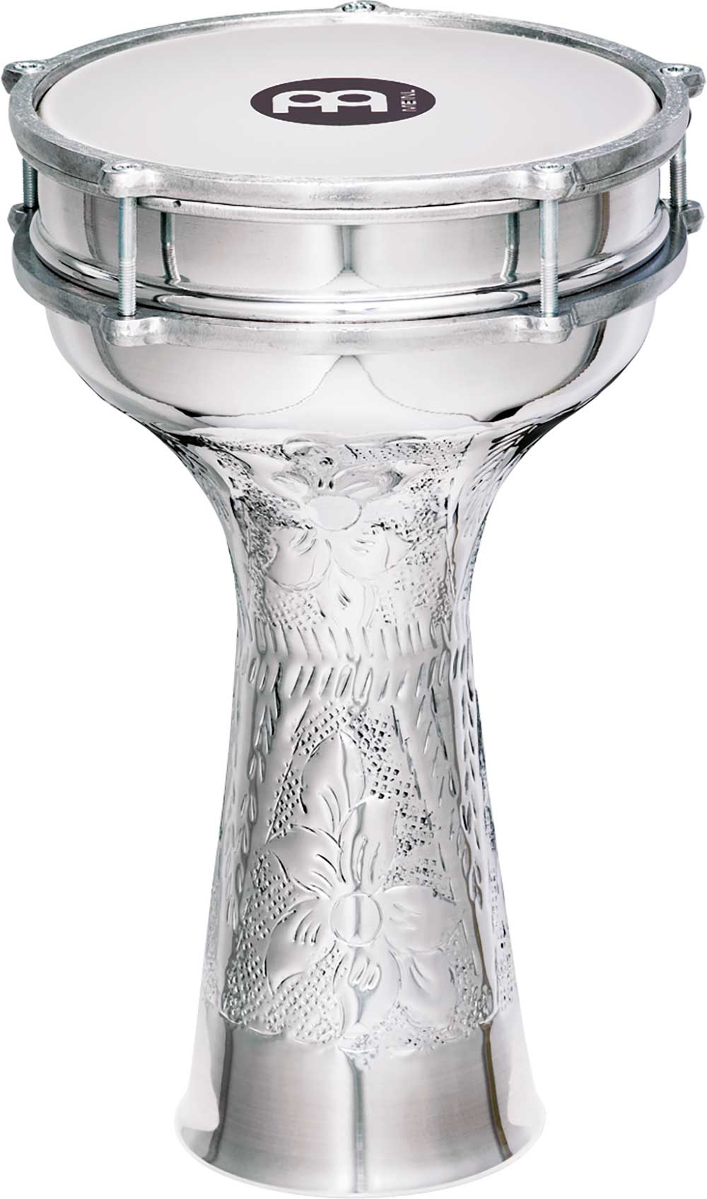 DOUMBEK ‘Darbouka 8» X 14 1/2». Los Darbukas y Doumbeks tienen su origen en la música del medio oriente. Gozan de gran popularidad en cada país en el que la música y el ritmo forman parte de lo cotidiano. Más tarde encontraron su camino hacia la civilización occidental convirtiendose en un instrumento muy popular en la múscia moderna. Meinl ofrece una gran selección de valiosos Darbukas y Doumbeks de características fuera de lo común.