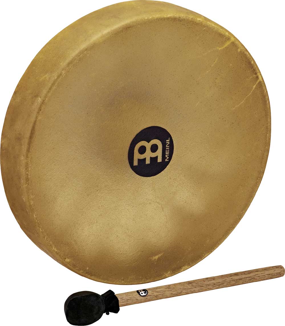 PANDERO ‘Tambor nativo 15». Estos tambores son construidos respetando las mismas caracterísitcas que tenían los tambores nativos americanos. El parche de piel natural de búfalo es tensado por la parte posterior del casco con una cuerda de nylon entrelazada.