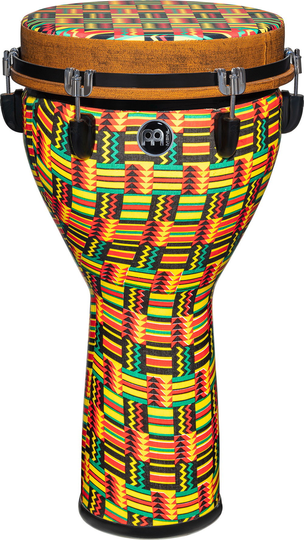 DJEMBE Creado tomando como punto más determinante un tono bajo profundo con una resonancia libre, el Meinl Jumbo Djembe trata de obtener grandes sonidos con materiales para todo clima. Disponibles en una variedad de diámetros, estos djembés producen una gama de tonos notablemente amplia, desde los graves en auge hasta los agudos. El parche y el casco 100% sintéticos no se desafinan con los cambios de temperatura o humedad y se combinan para ofrecer agudos cortantes y claros, y bajos robustos. La construcción liviana hace de este djembe un compañero de viaje ideal. Un sistema de afinación mecánica fácil de usar está anclado por hardware de alta resistencia para garantizar un sonido consistente y confiable. Tanto en casa, en el escenario como en un estudio, el Jumbo Djembe también es perfecto para su uso en aulas y talleres.