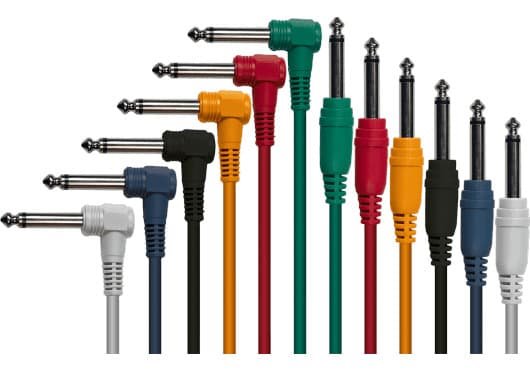 Juego de 6 cables patch de colores. 90 cm de largo. Jack mono macho a jack mono macho. 1 conector a