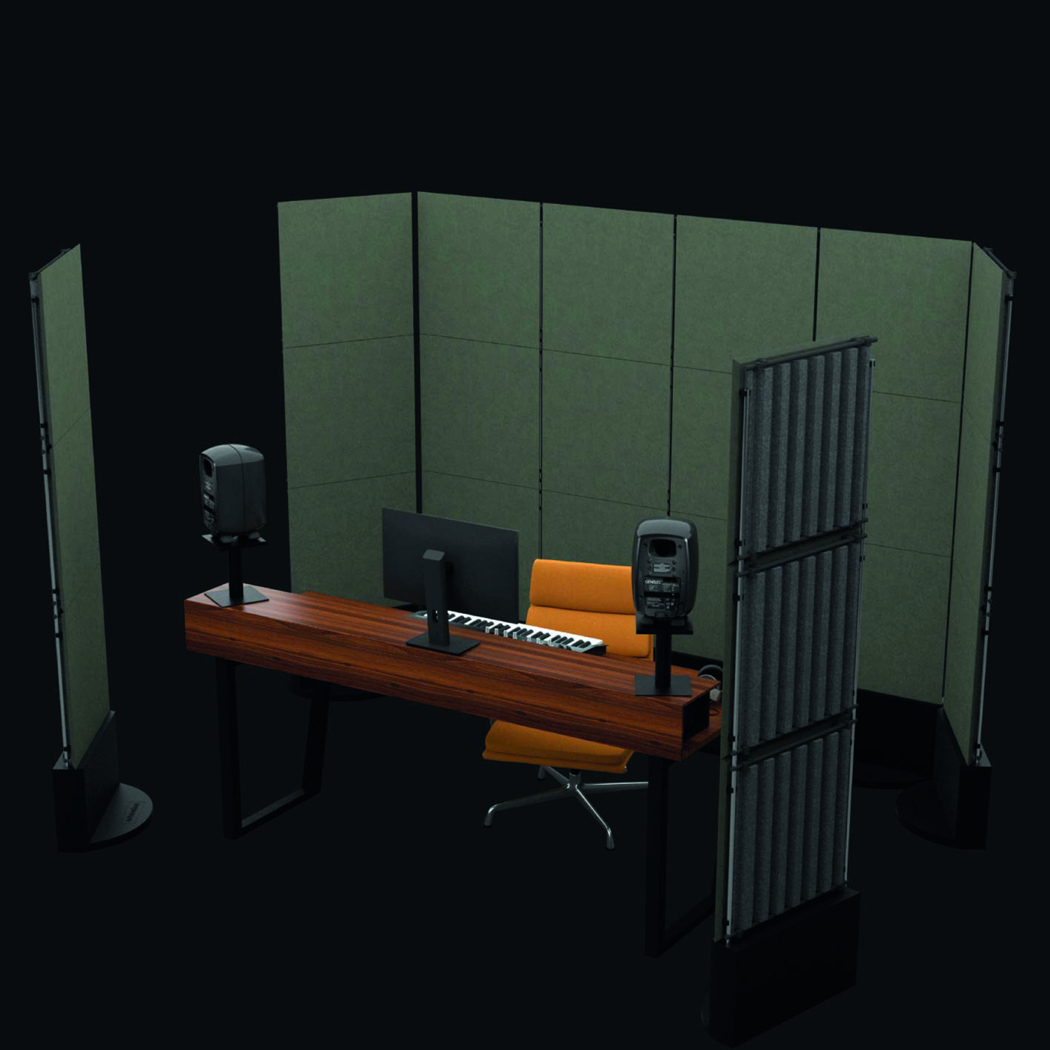 Este kit le permitirá tratar los puntos en los que inciden las primeras reflexiones alrededor de la posición de escucha, al tiempo que con alguno de los paneles aísla la voz que está grabando; si se encuentra en la fase de mezcla, también puede usar la totalidad del kit para un tratamiento completo alrededor de una zona. Dado que se trata de una solución portátil, puede mover y reconfigurar las paredes móviles en función de sus necesidades. Si es necesario, los paneles también pueden ser fácilmente montados en una pared.