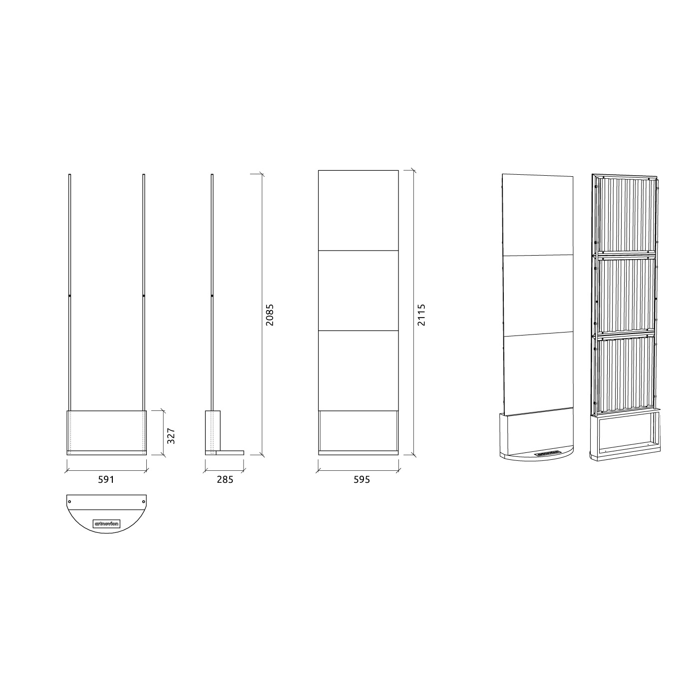 Dimensiones: Estructura: 591x285x2085 mm, Panel: 595×595 mm, Móvil: 595x285x2115 mm