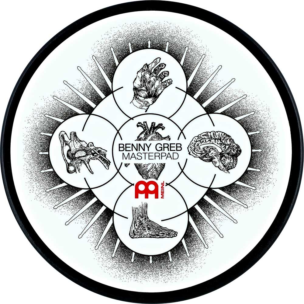 PAD DE PRACTICA ‘Pad de prácticas de 6» Benny Greb. El pad de 6» se puede roscar en un pie de plato o sobre las rodillas. Su superficie transmite un rebote y sensación igual a un parche de caja en afinación media.