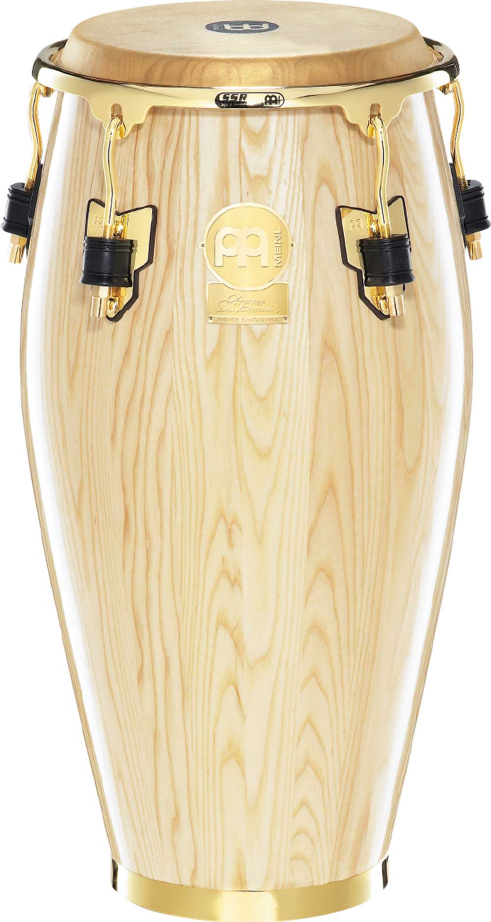 CONGAS ‘Quinto 11» Serie Artist: Mongo Santamaria. Con unos cascos hechos en fresno americano y parches True Skin Buffalo de MEINL estas congas te ofrecen un tono redondo y profundo. Las pieles que montan los parches son seleccionadas a mano por expertos. El hardware dorado le dan una presencia espectacular y los aros »Safe Sound» ofrecen una un golpeo ergonómico al tocar.