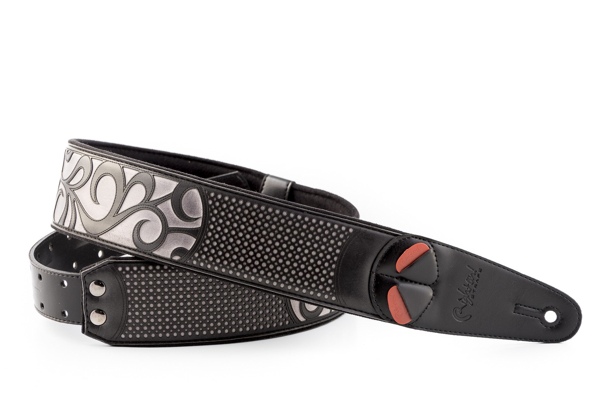 La correa NASHVILLE tiene una superficie que recuerda a antiguos grabados, las botas vaqueras, al trabajo manual, es una correa para la aventura. Esta correa evoca a la fuerza y a la persistencia en el tiempo, y lo consigue al estar fabricada en materiales de alta calidad Esta correa mide 6cm de ancho. Y cuenta con un largo comprendido entre los 95 y 145cm gracias al exclusivo sistema de ajuste de Righton Straps RAS (Righton Adjustment System) que permite ajustar la correa a la longitud deseada. Como en el resto de la colección MOJO, estas correas están fabricadas sin ningún tipo de crueldad animal y pueden presumir de ser correas veganas. La correa Nashville estáfabricada con materiales sint?ticos de alta tecnologa y con tejidos respetuosos con el medio ambiente. Los materiales han sido sometidos a diferentes pruebas para testar su resistencia, por lo que podemos garantizar la durabilidad de los mismosí Cuenta además con un forro de microfibra que no resbala y que repele el sudor. Esta correa estáacolchada, con 5mm de látex que hace que resulte muy cómoda y sea tambi?n muy ligera. En la punta delantera cuenta con dos pequeños bolsillos portapúas y en la parte trasera lleva dos «Fast pick dispender». Todas las correas RightOn! están diseñadas y fabricadas en España.