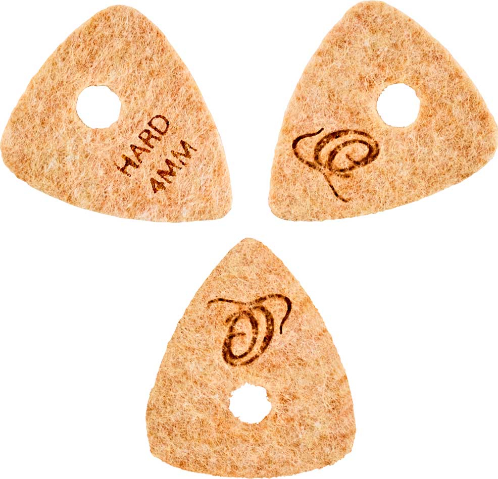 PACK DE PÚAS Pack de 3 puas de fieltro para ukelele y cuerdas de nylon. Grosor Soft de 3mm. Fabricadas en lana sintética comprimida. Cuentan con agujero central para una mejor fijación en el pulgar.
