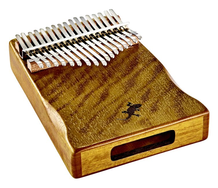 KALIMBA OKB3 Kalimba de estilo Africano fabricada en madera sólida. Con 17 notas afinadas en la escala de C mayor. Fabricada en madera de phoebe dorado y con acabado brillante. Boca sonora frontal que transmite las vibraciones al cuerpo del músico mientras se toca. Motivo decorativo «Lizard´´ en tapa superior. Incluye funda deluxe, bolsa cubre polvo, martillo de afinación y gamuza limpiadora.