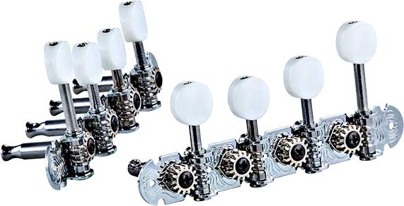 CLAVIJERO INSTRUMENTO FOLK OTMMAPREM-CR Clavijero premium para mandolina con forma tipo F. Acabado cromado con botón negro.