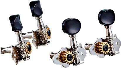 CLAVIJERO INSTRUMENTO FOLK OTMUKOG-CR Clavijeros de ukelele con mecanismo abierto. Acabado cromado y palometa en plástico ABS negro.