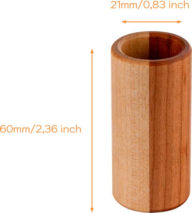 SLIDE El slide de madera combina el sonido de un slide de cuello de botella tradicional con las características de un producto de madera. El slide no es tan pesado como un slide de latón y tiene, con mucho, el sonido más cálido que jamás haya escuchado. Disponible en 4 tamaños (pequeño, mediano, grande y extra grande), seguramente encontrará el ajuste perfecto.