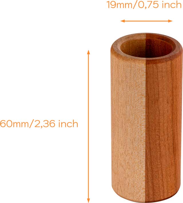 SLIDE El slide de madera combina el sonido de un slide de cuello de botella tradicional con las características de un producto de madera. El slide no es tan pesado como un slide de latón y tiene, con mucho, el sonido más cálido que jamás haya escuchado. Disponible en 4 tamaños (pequeño, mediano, grande y extra grande), seguramente encontrará el ajuste perfecto.