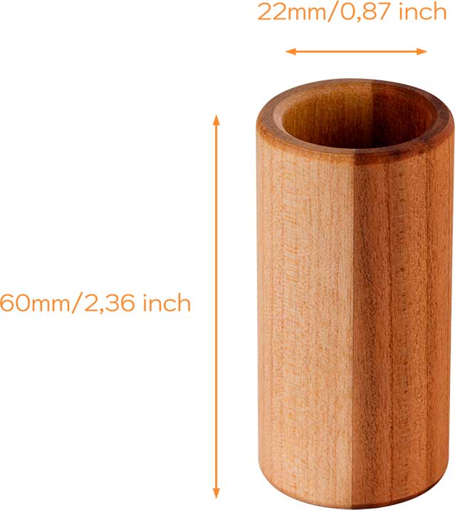 SLIDE El slide de madera combina el sonido de un slide de cuello de botella tradicional con las características de un producto de madera. El slide no es tan pesado como un slide de latón y tiene, con mucho, el sonido más cálido que jamás haya escuchado. Disponible en 4 tamaños (pequeño, mediano, grande y extra grande), seguramente encontrará el ajuste perfecto.