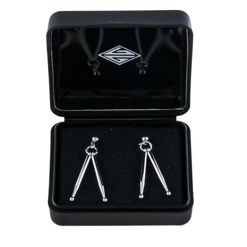 Pendientes plateados con detalle de baquetas. Presentación en estuche.