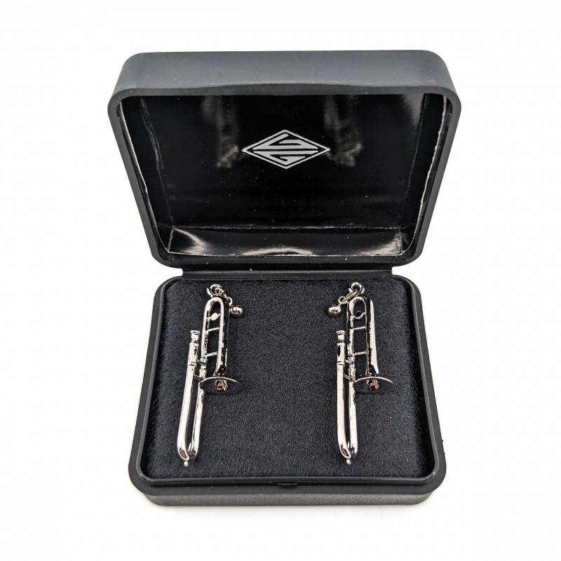 CARACTERÍSTICAS · Material: aleación de estaño, zinc y antimonio · Color: plateado · Motivo: trombón · Medidas: