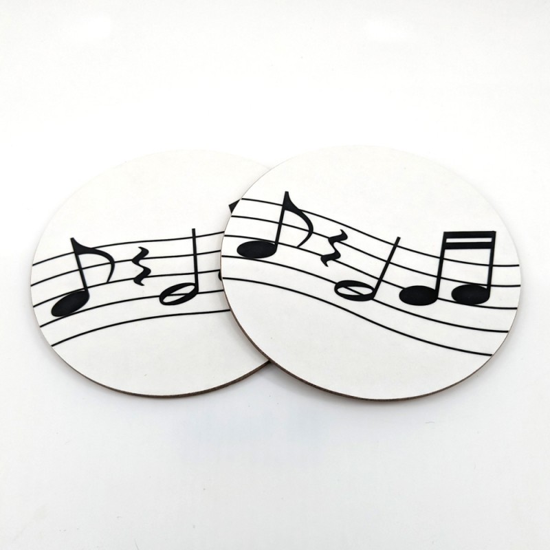 Set de dos posavasos blancos con dibujo de pentagrama.