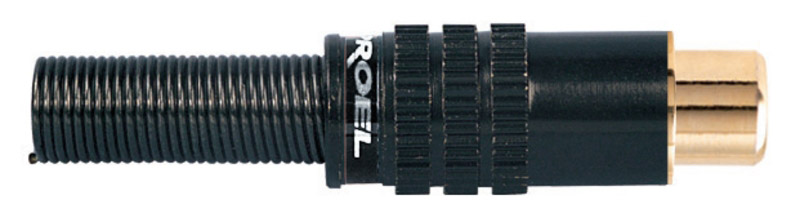 CONECTOR RCA Conector Proel RCA hembra profesional con contactos dorados, muelle para sujección de cable de 8mm. Anillo marcador negro.