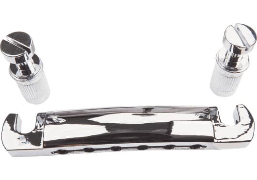 Puente cromado para Les Paul. Formato Stop Tail. Incluye los dos pivotes de fijación del puente al