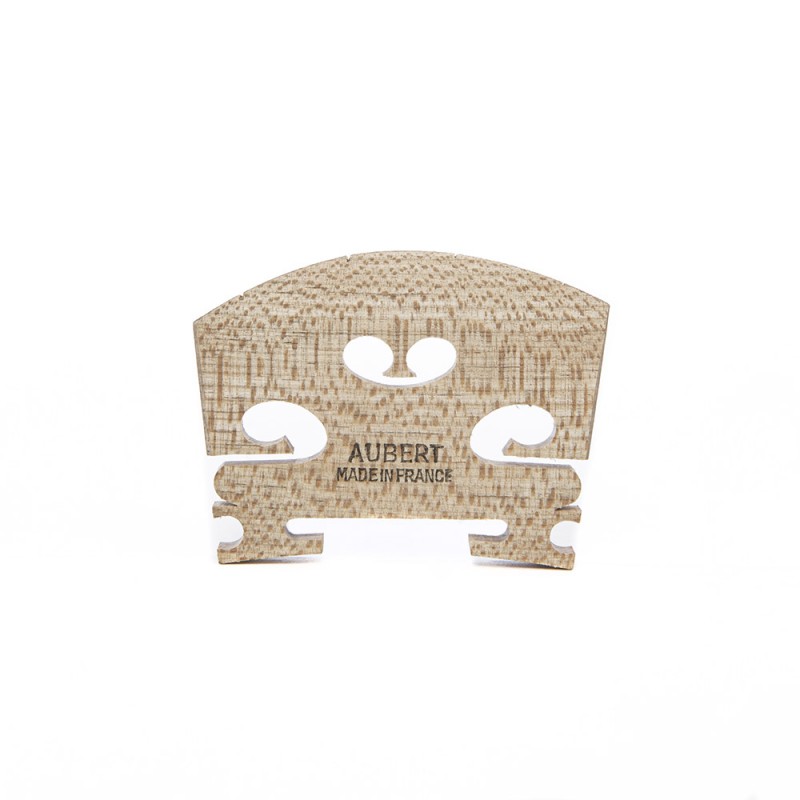Puente de violín Aubert hecho con madera de arce de calidad nº 5. Este modelo ha sido ajustado para poderse adaptar a la mayoría de instrumentos. Fabricado con madera seleccionada, prestando la mayor atención en todo el proceso de elaboración; secado, tratado y corte.
