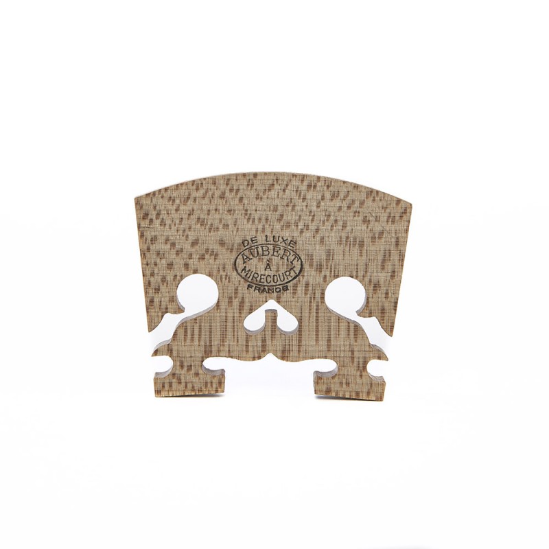 Puente de violín Aubert hecho con madera de arce de calidad nº 7. Este modelo ha sido ajustado para poderse adaptar a la mayoría de instrumentos. Fabricado con madera seleccionada, prestando la mayor atención en todo el proceso de elaboración; secado, tratado y corte.