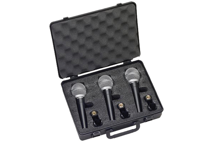 MICRÓFONO DINÁMICO DE MANO Maleta con 3 micrófonos dinámicos para voz R21 sin interruptor, cada uno con un patrón de captación cardioide ajustado para una ganancia máxima antes de la retroalimentación, un parabrisas de doble etapa, malla de gran calibre y anillo anti-abolladuras para una protección mejorada, así como oro. Pines XLR chapados que garantizan una conexión positiva.