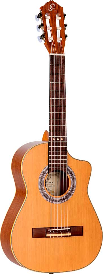 GUITARRA CLÁSICA 3/4 RQ39E Requinto electrificado de estilo Mexicano con cuerpo profundo. Tapa maciza de cedro en acabado natural satinado. Aros y fodo en sapele satinado. Cuerpo extra profundo de 110mm. Mastil de okoume en acabado gloss satin. Lamina de mogal en tapa. Diapasón y puente de nogal. Electrónica Ortega MagusGo. Funda deluxe incluida.