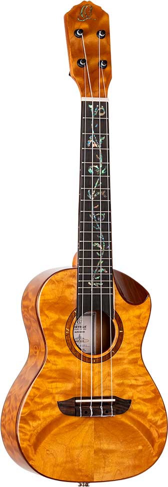 UKELELE CONCIERTO Nuestros ukeleles de la serie Elite son instrumentos de primer nivel fabricados con los mejores materiales con una artesanía excepcional. Todos los modelos cuentan con una tapa sólida hecha de varias maderas exóticas, un nuevo sistema de pastillas MagusFly y máquinas de afinación Graph Tech® Ratio. El corte festoneado le permite llegar fácilmente incluso a los trastes más altos. El preamplificador incorporado del ukelele con batería recargable se puede equipar y quitar fácilmente y lo hace ideal para cualquier ocasión. Con cada ukelele viene una bolsa de conciertos de élite acolchada.