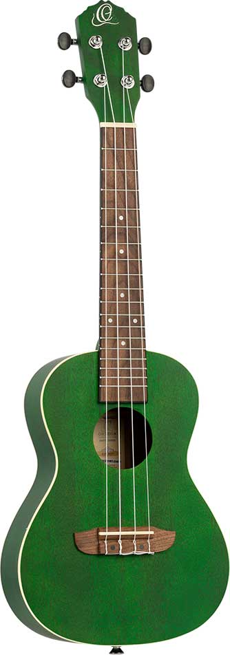 UKELELE CONCIERTO La popular serie Earth de Ortega está disponible en 10 vistosos colores y con o sin electrónica. Este colorido ukelele tamaño concierto tienen un acabado en poro abierto transparente y eganche trasero para correa.