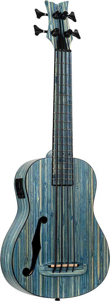 UKELELE BAJO Cada uno de los instrumentos de la serie Bamboo está hecho de bambú macizo natural. Puedes elegir entre ukelele soprano, de concierto, tenor o bajo uke. Estos ukeleles cuentan con un preamplificador MagusUke, un cutaway y sintonizadores Graph Tech Ratio negros. El bajo uke viene con un orificio en F y un hermoso hardware negro. Todos estos instrumentos están disponibles en acabado ‘natural o ‘jean stone wash’.